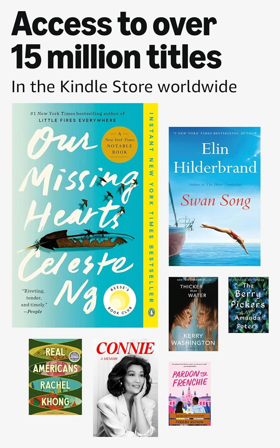 Wireless Charging: Experience the convenience of wireless charging, allowing you to power up your Kindle effortlessly and keep it ready for your next reading session.