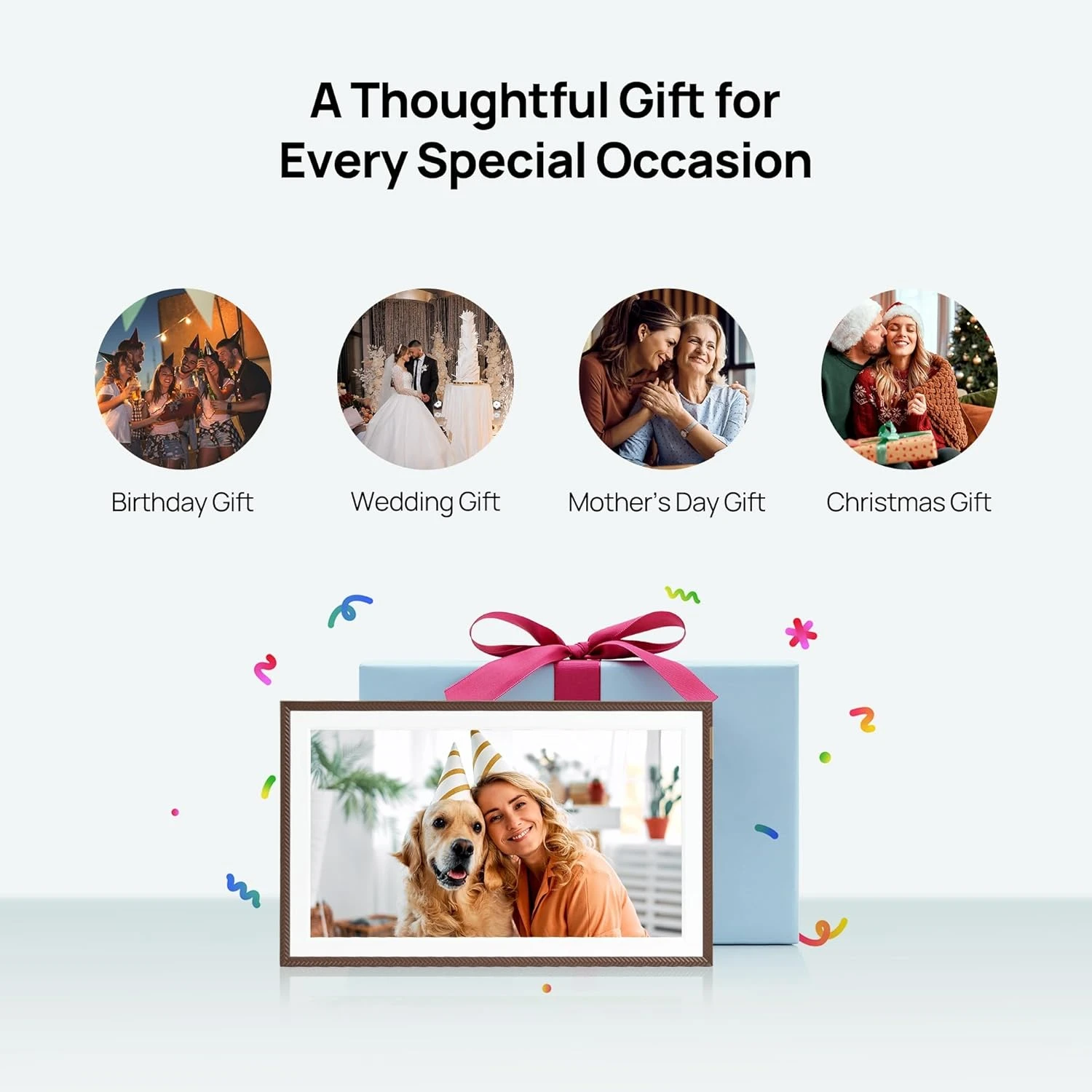 3. EASY SETUP, EXCELLENT CUSTOM APP: Pre-set Wi-Fi for non-tech-savvy recipients (plug & enjoy). Manage your smart digital frame with 30+ folders and share unlimited photos & videos (up to 2 mins per video, ≤125MB, 1080p).