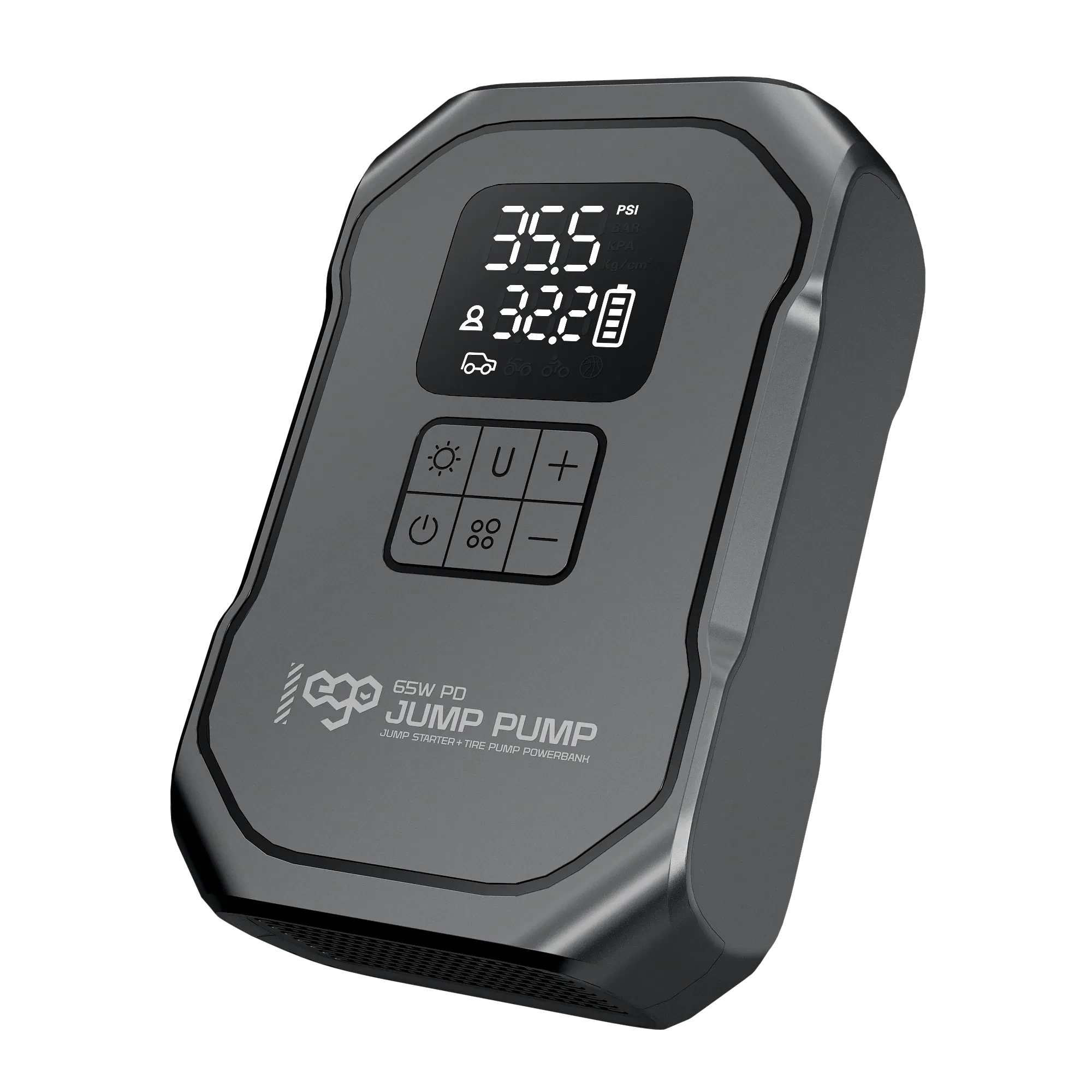 Introducing the EGO JP-8 Power Bank Jump Pump, the ultimate 4-in-1 solution for your automotive and portable power needs. This versatile device combines a jump starter, air pump, power bank, and LED flashlight into one compact and powerful unit. Ideal for drivers, adventurers, and gadget enthusiasts, it ensures you're always prepared for any situation on the road or outdoors.