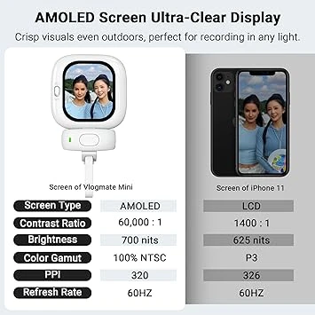 6. 【Compatible devices】Vlogmate Mini is compatible with all iPhone models and offers two types of data cablesx2 to meet different user needs. Our product is compatible with iOS 11 and above systems, including iPhone 5-iPhone17 and others (please confirm phone model before purchasing). The Founist phone selfie screen is lightweight and portable, allowing for effortless shooting anytime, anywhere. Official gift storage bag, suitable for travel photography and other scenes, allowing for more creative freedom.