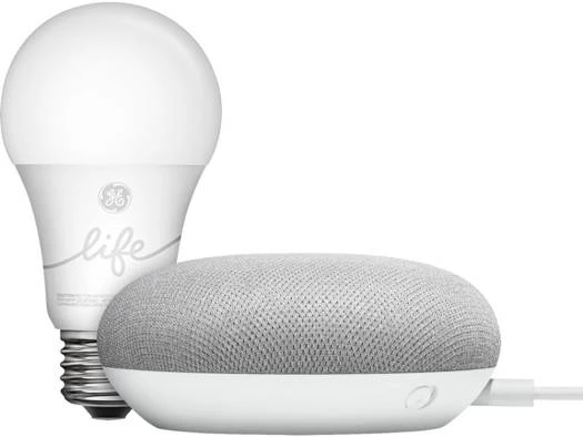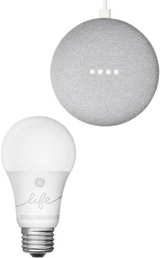Start or expand your smart lighting system with the chalk Google Home Mini Smart Light Starter Kit. The kit includes a Home Mini and a GE C-Life smart light bulb, which, when paired together in the same room, allow you to control the light with just your voice. Powered by the Google Assistant, the Home Mini provides answers to all your questions, including weather, traffic, sports, your schedule, and more.