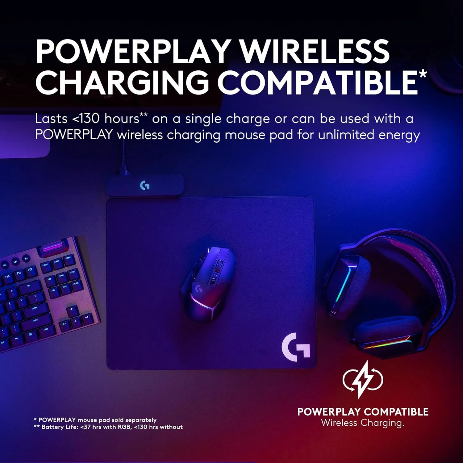 8. POWERPLAY compatible: G502 X PLUS wireless PC gaming mouse stays charged, at rest and at play, with our unique wireless charging solution (sold separately)