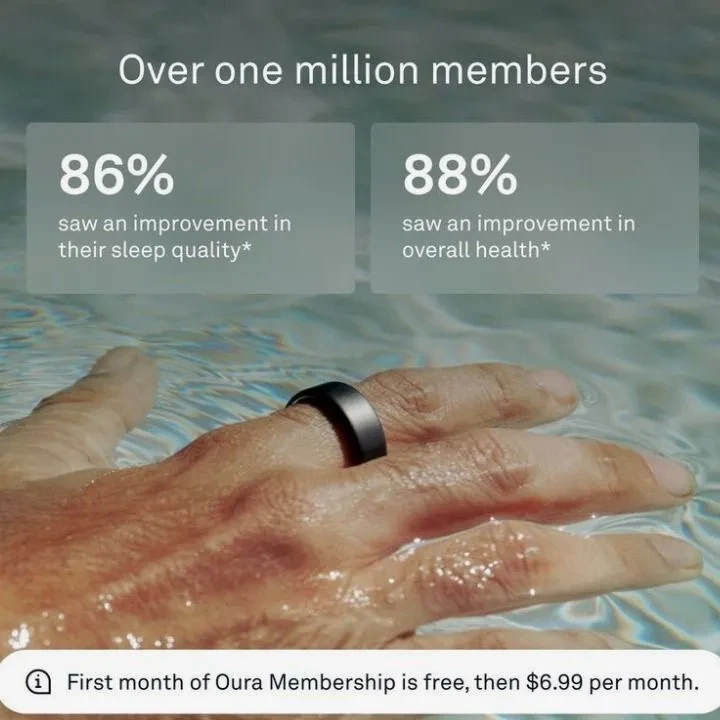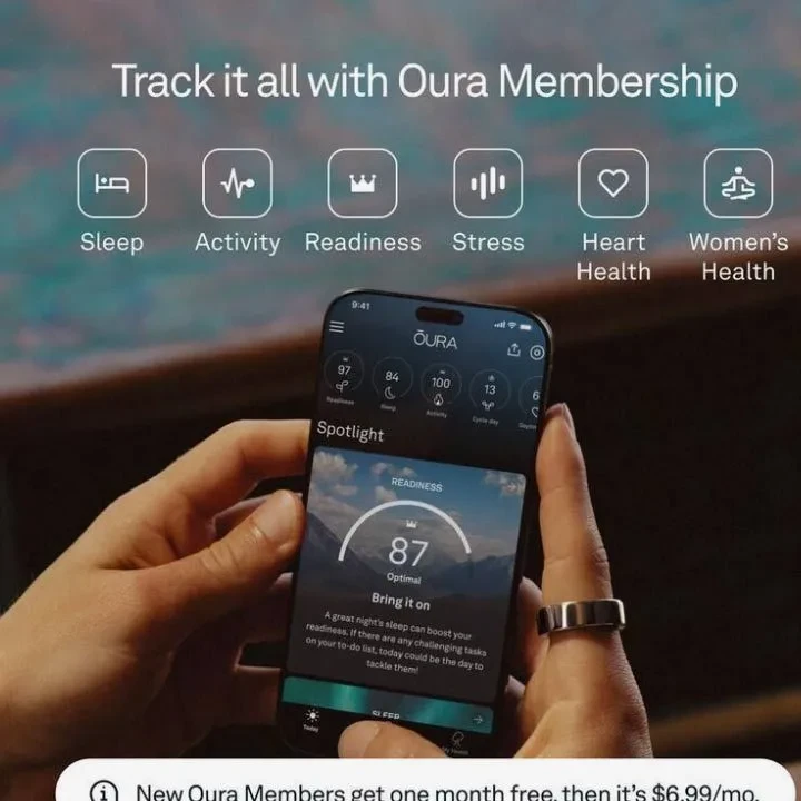 Features Tracks sleep, 24/7 heart rate, heart rate variability (HRV), respiration, blood oxygen (SpO₂), body temperature, movement/activity, readiness/health scores, stress and recovery insights