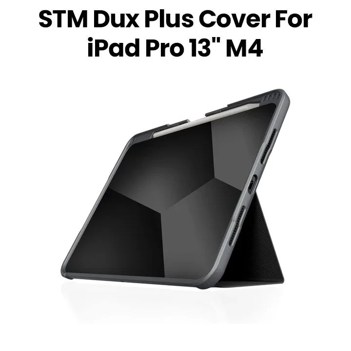 The STM Dux Plus iPad Cover for iPad Pro 13" M4 (2024) is built to provide superior protection without sacrificing style or functionality. Featuring reinforced corners, a rugged folio design, and a transparent back, it offers military-grade drop protection while keeping your iPad slim and portable. With full Apple Pencil support and a professional Black finish, this case is ideal for students, professionals, and travelers alike.