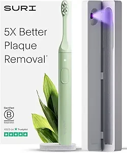 SURI SRWFSET1 1.0 SONIC ELECTRIC TOOTHBRUSH WITH UV CLEANING TRAVEL CASE | 40+ DAY BATTERY GREEN