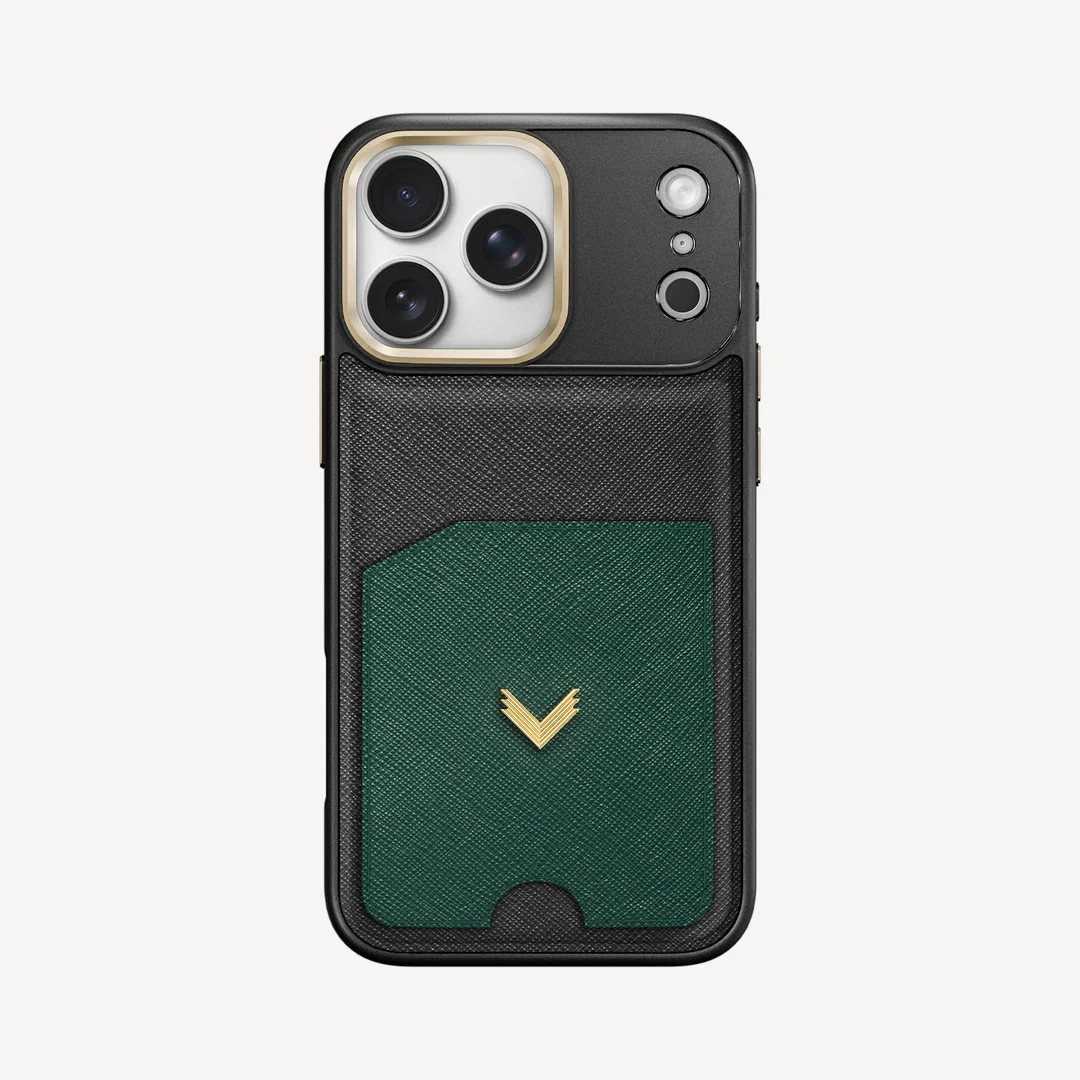 Introducing the VELANTE Card-Slot Leather iPhone 17 Pro Max Phone Case in a sophisticated dark green shade. This premium case is designed for those who value both style and functionality, offering a seamless blend of elegance and practicality. Perfect for professionals and trendsetters alike, it provides superior protection while keeping your essentials close at hand.